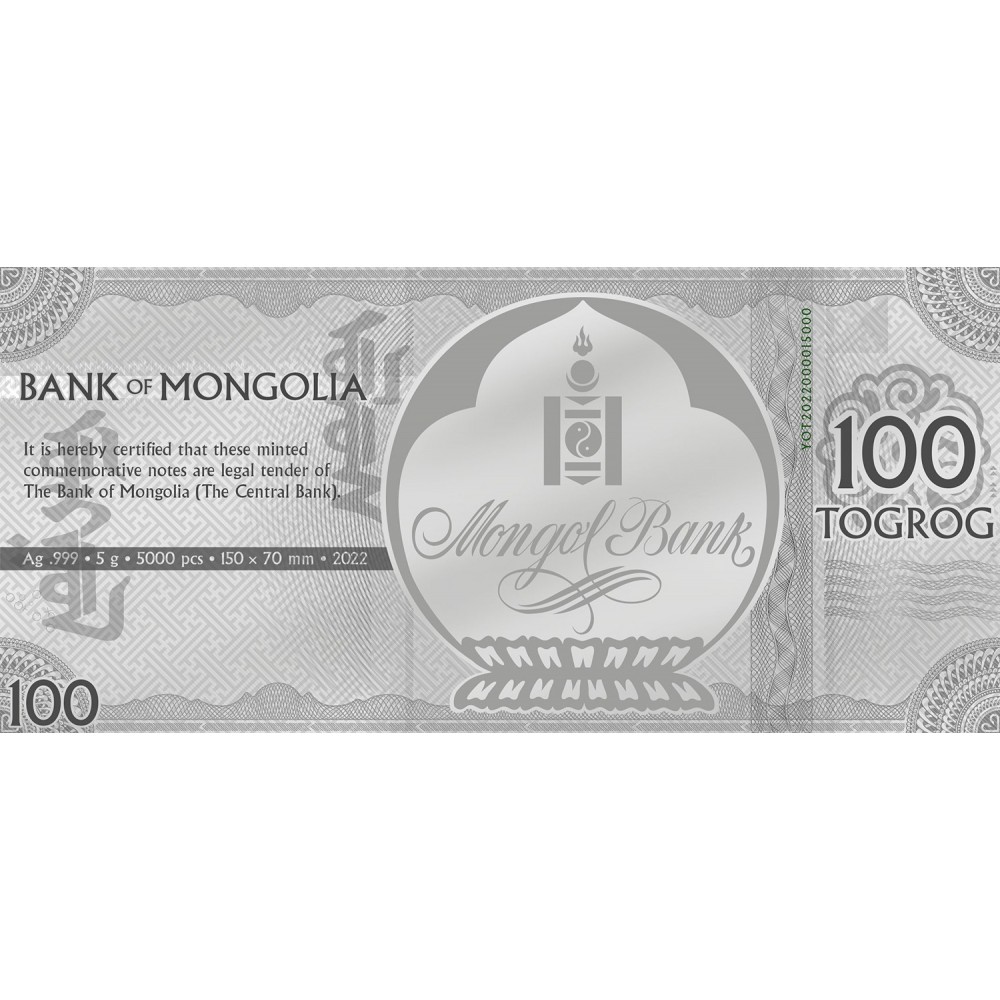 現貨 - 2022蒙古-生肖-虎年-5克銀鈔