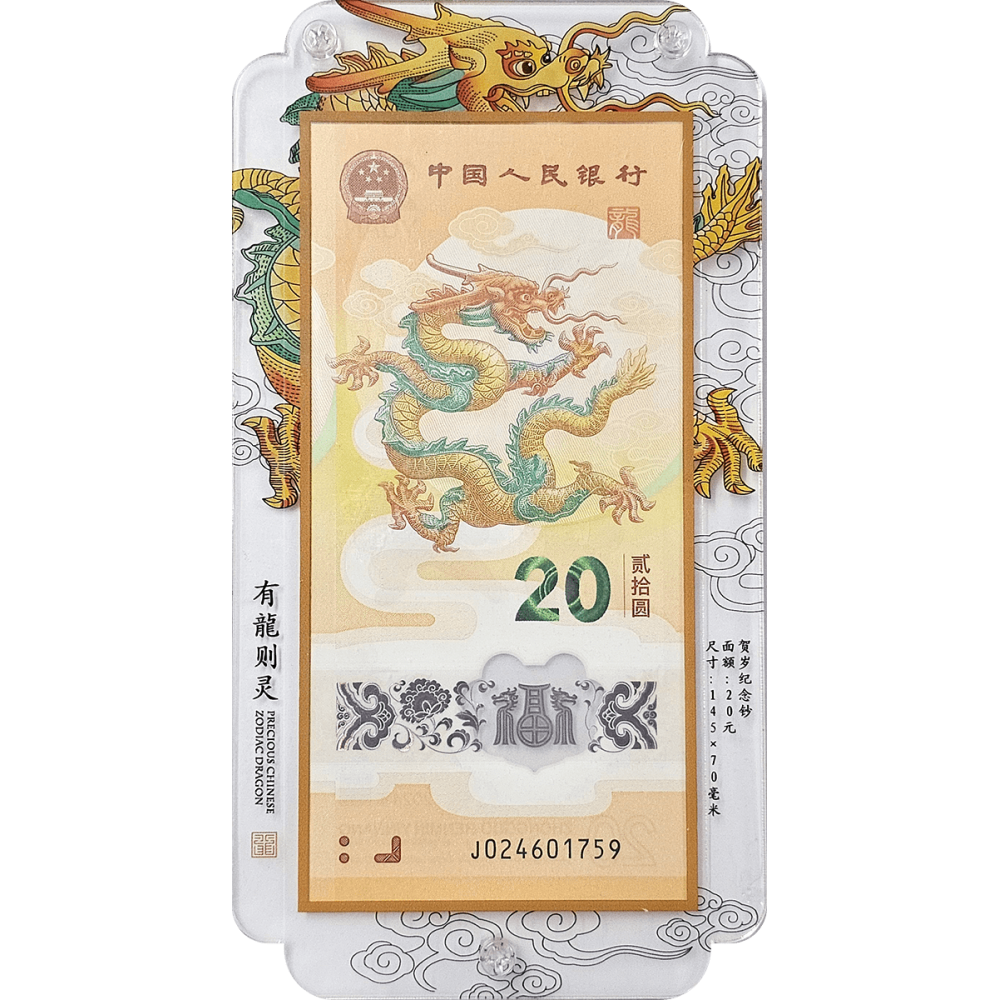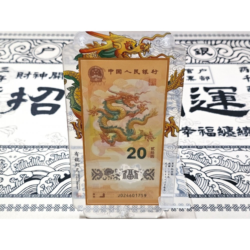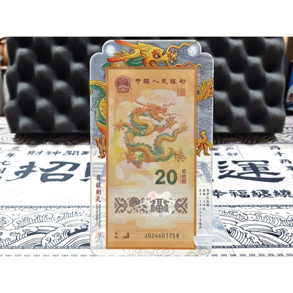 現貨 - 2024中國-生肖-龍年-(紀念鈔+塑展示架+毛氈包)組
