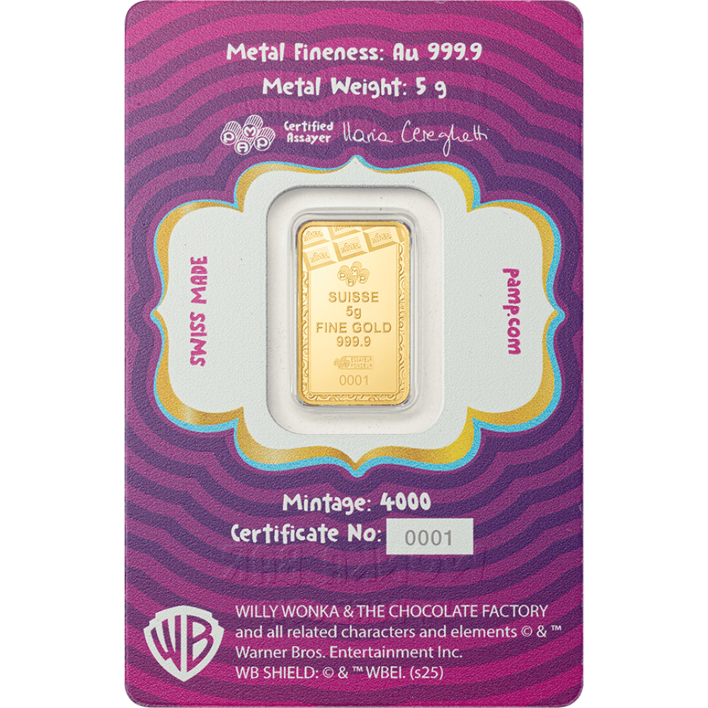 預購(確定有貨) - PAMP-巧克力冒險工廠(威利·旺卡-巧克力)-5克金條(卡裝)