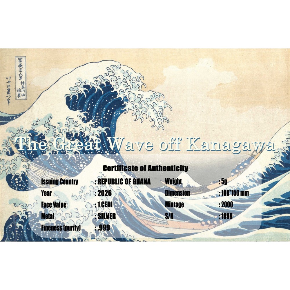 預購 - 2026迦納-神奈川沖浪裏(葛飾北齋)-5克銀箔