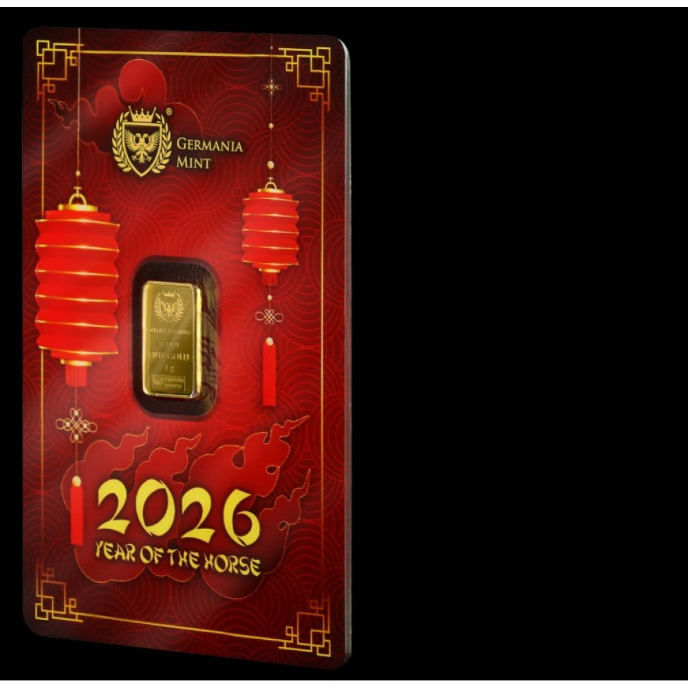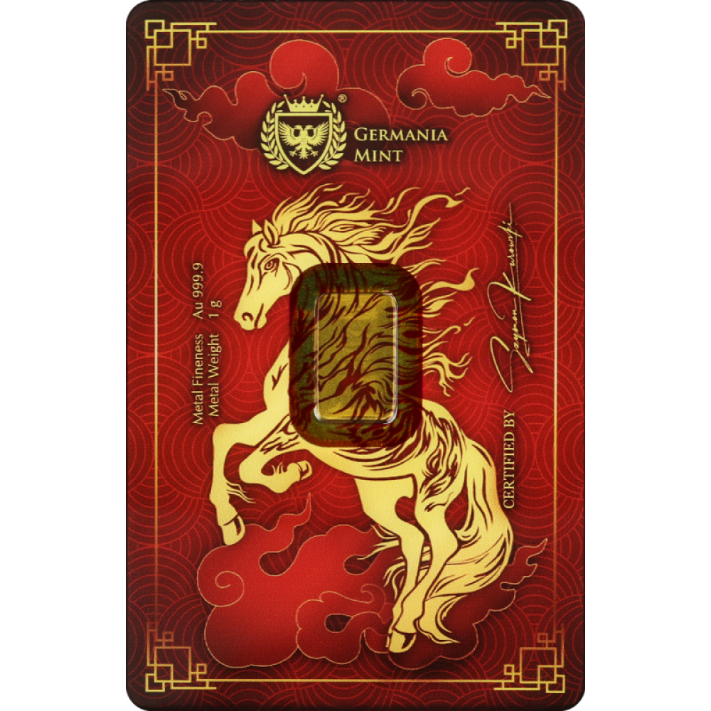 預購(確定有貨) - 2026日耳曼尼亞Germania Mint-生肖-馬年-1克金條(卡裝)